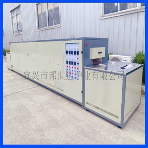 ②本炉总长约7.7米,其中进出料台长0.95米。炉体采用分节制作,底部采用万向滑轮,方便客户移动。